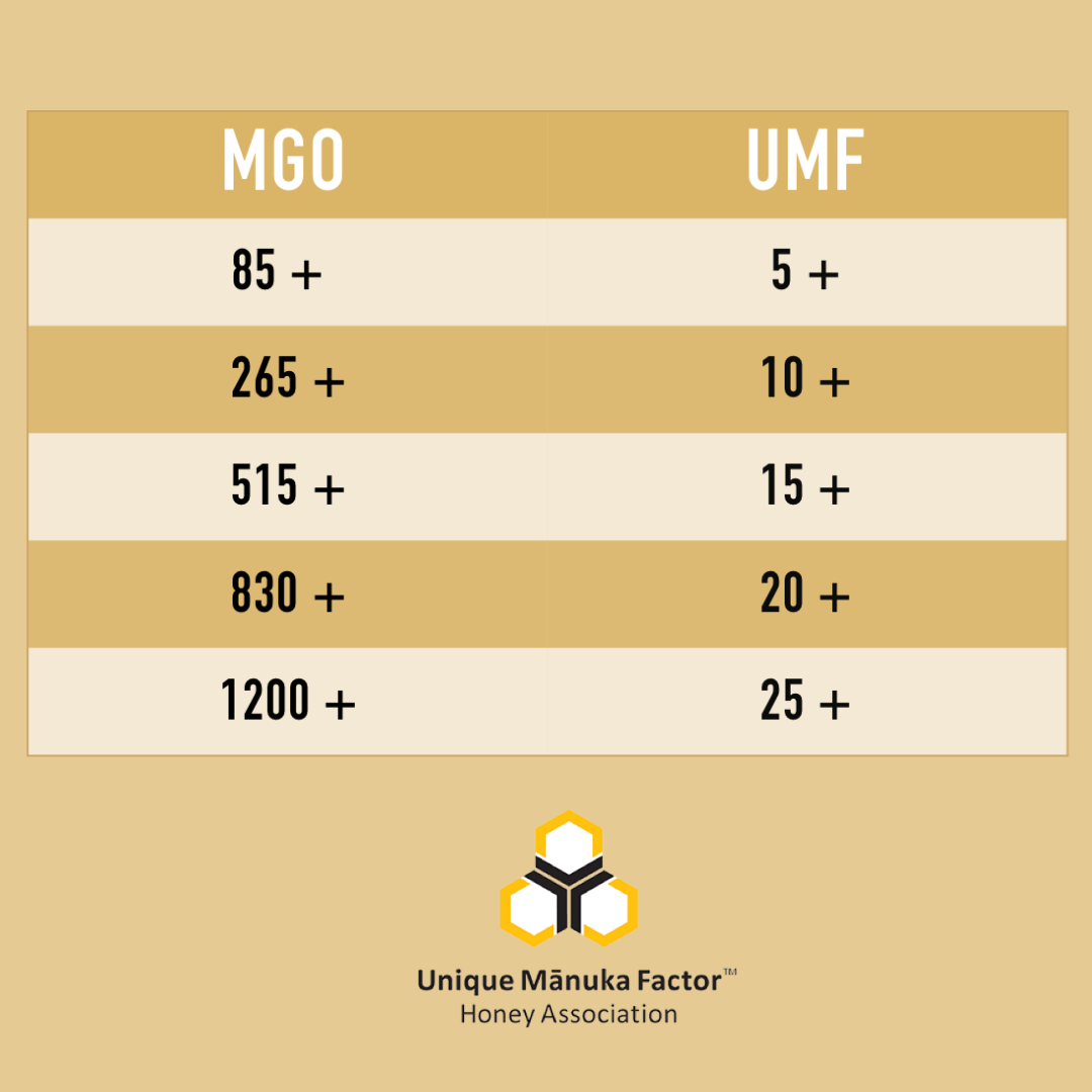 Unique Mānuka Factor (UMF) is a grading system that measures key naturally occurring chemicals found in Mānuka honey. The UMF mark provides complete confidence of the quality and purity of a batch of honey.